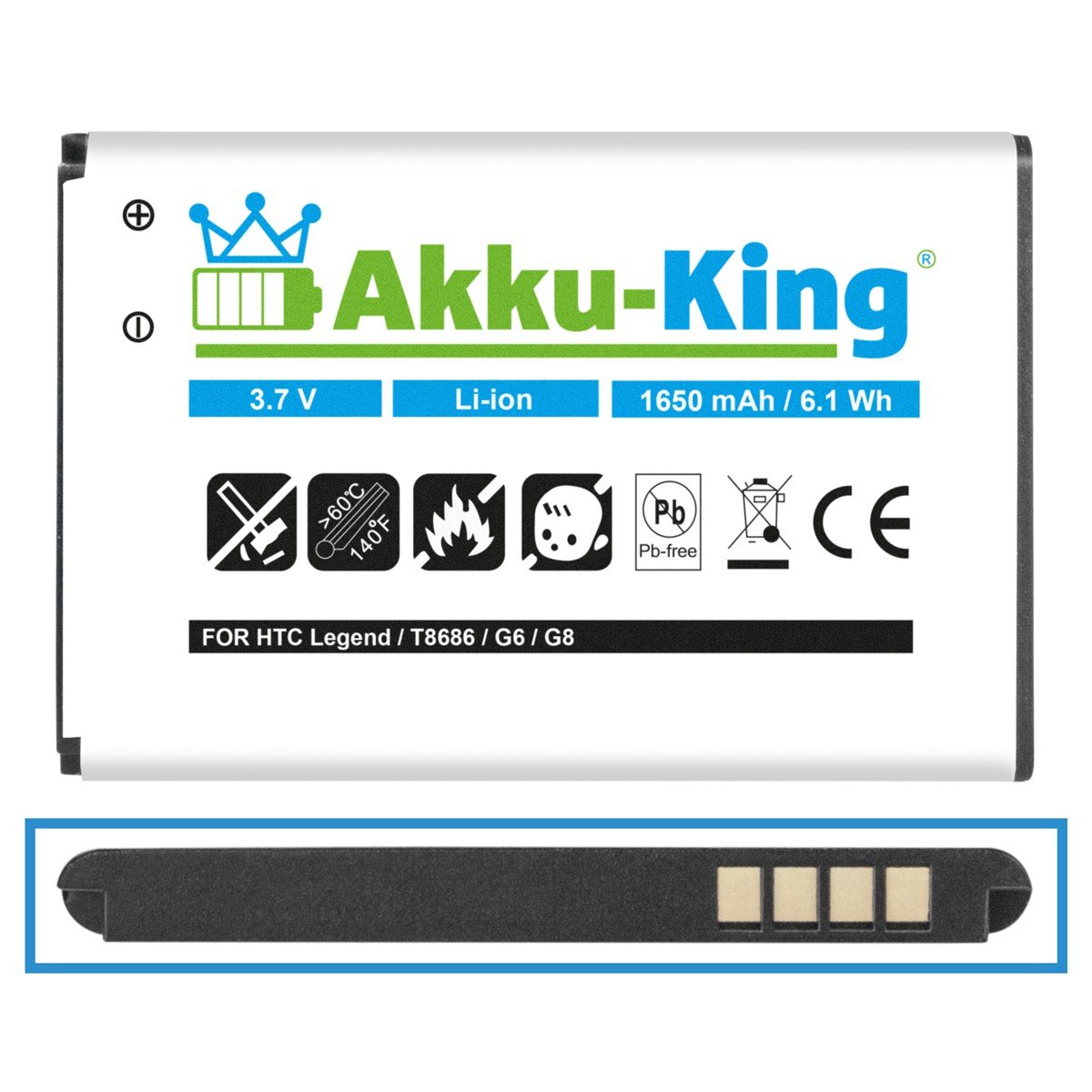 Akku HTC Wildfire, G8, , , Buzz, HTC Evo 4G, Legend G6, Incredible remplace BA , , B , M Li Ion mAh