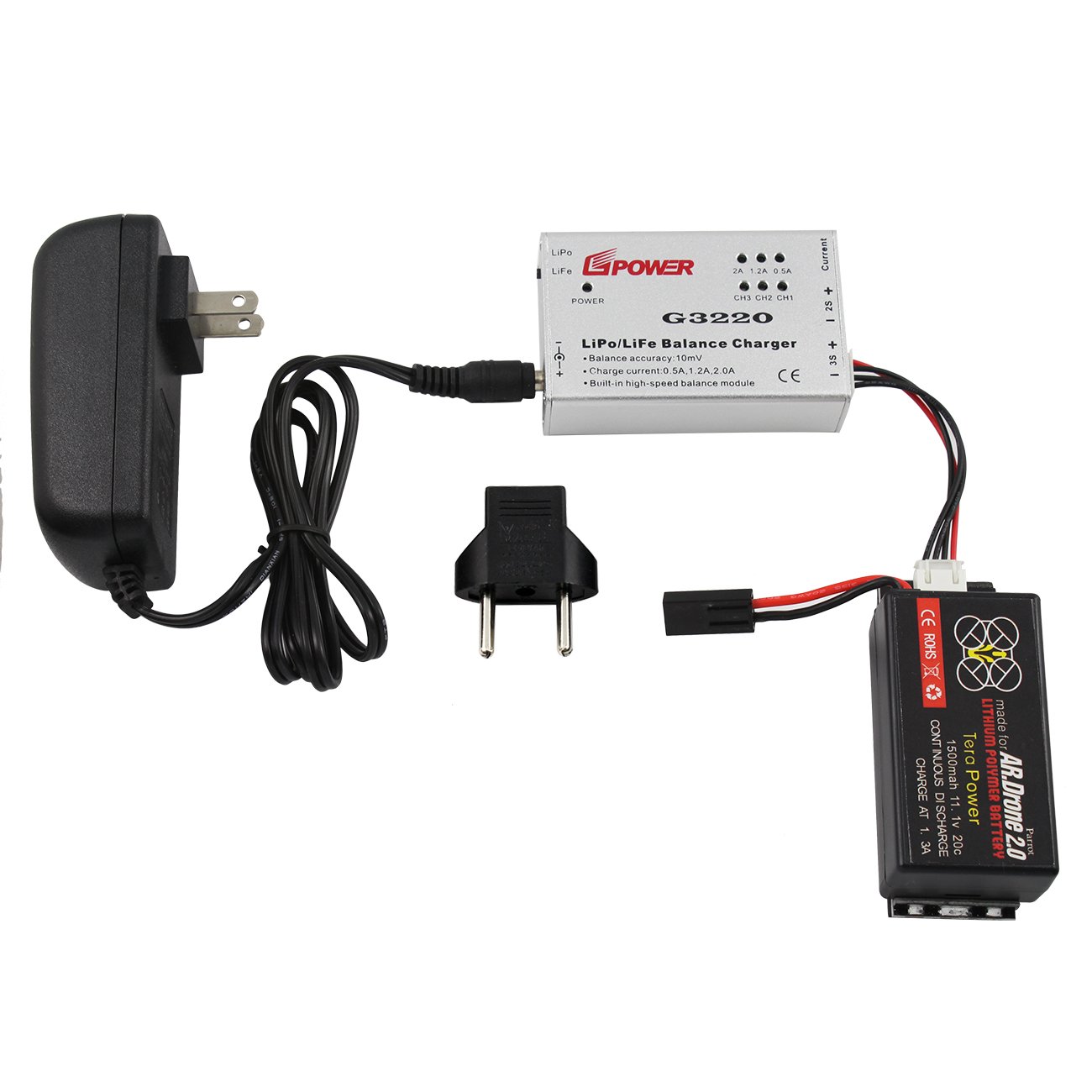 Kit chargement Batterie mAh ,1 V en lithium ion polymer + Station accueil + LiPo/LiFe Chargeur balance + Adaptateur alimentation Parrot AR. Drone 2.0/1.0 Quadricoptère télécommandé